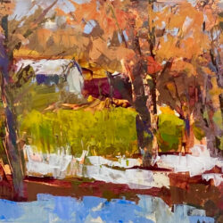 Jan Dyer grew up in the Midwest, but has lived in Suffern, New York for many years. Many of her paintings are of the Midwest, New Jersey, Pennsylvania and New York—particularly New York’s Harriman State Park. She loves to travel, both for the experience, and to find new landscapes to paint. France is a favorite: It’s her second home emotionally—she’d like it to be her second home in fact.