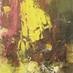 Very sensitive to their environments, birds are often a good indicator of the health of a particular ecosystem. In my paintings, I combine aggressive abstract brushstrokes and textures with realistically rendered birds to create spaces that give the impression of erosion, change and isolation”. Justin Kellner holds a BFA from Central Michigan University and a MFA from Kendall College of Art and Design.