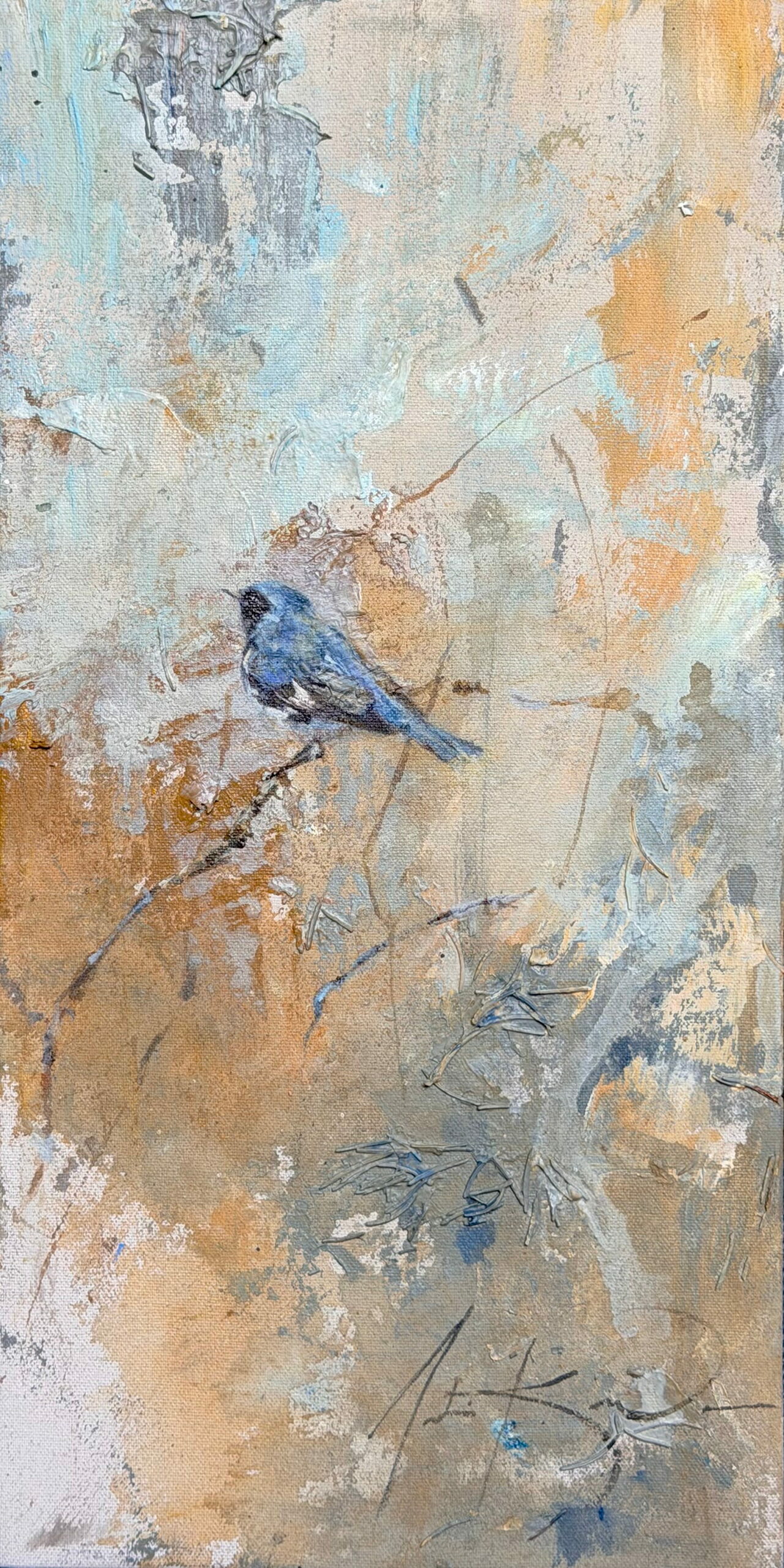 Very sensitive to their environments, birds are often a good indicator of the health of a particular ecosystem. In my paintings, I combine aggressive abstract brushstrokes and textures with realistically rendered birds to create spaces that give the impression of erosion, change and isolation”. Justin Kellner holds a BFA from Central Michigan University and a MFA from Kendall College of Art and Design.