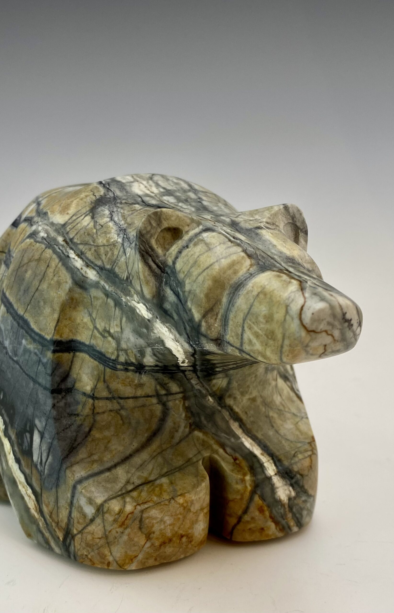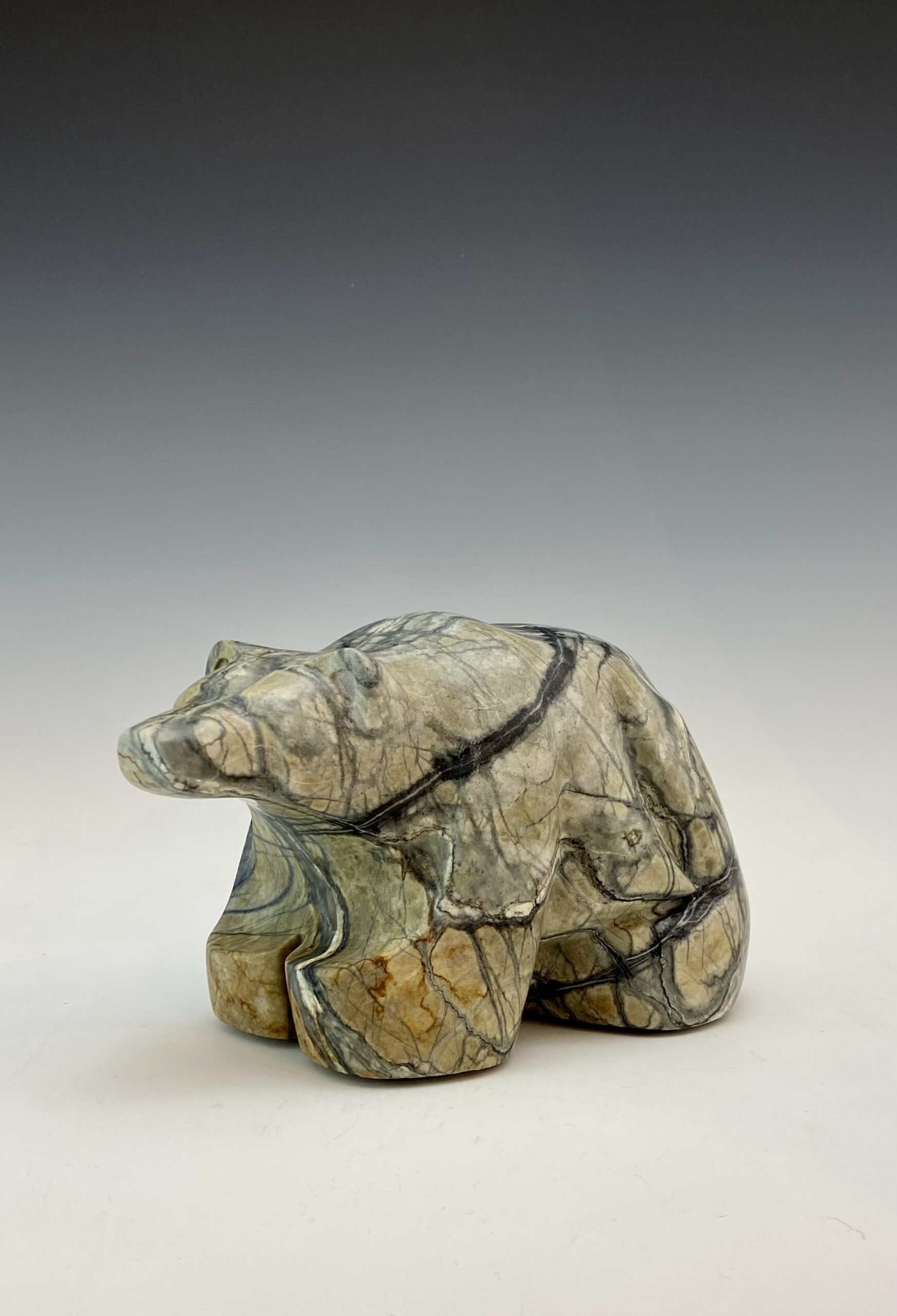 Shawne Camp's sculptures ultimately represent the flow he fell in love with — combining shapes, curves and texture — to create what has always existed in the stone. If the artist struggles with the stone to create his particular vision, it probably wasn’t meant to be. In that event the artist adjusts his idea to something different. Something that better suits the stone and thus maintains his flow.